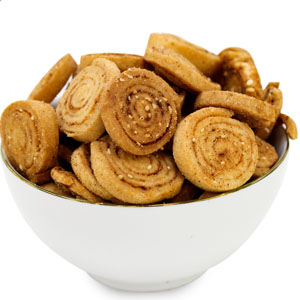 A popular crispy snack prepared by using moth bean flour and gram flour and spices.